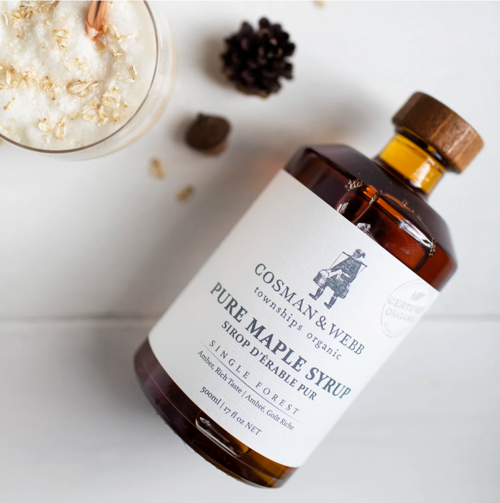 Cosman & Webb Maple Syrup from the Quebec townships. Established in 1977, the sugar bush of the Cosman & Webb Farm has been producing the finest, most pure, organic maple syrup for nearly half a century. Today, the ancient forest and fertile soils are home to an abundance of thriving animal and plant species; it is a sanctuary of biodiversity, a place of beauty, and is now cherished by a third generation of Cosmans. Single Forest Syrup 250ml